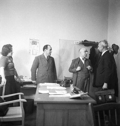 Auch das Geschehen im Hintergrund fotografiert Erna Wagner-Hehmke: Interfraktionelle Begegnungen zwischen den Abgeordneten auf den Fluren, Mitarbeiterinnen und Mitarbeiter des Sekretariats des Parlamentarischen Rats, Festveranstaltungen als Rahmenprogramm zu den verfassungshistorisch bedeutenden Augenblicken und die Umbauarbeiten an der Pädagogischen Akademie zum Bundeshaus. So bietet sie einen Einblick in die Arbeitsweise und die Alltagswelt des Parlamentarischen Rats über die Sitzungen hinaus.